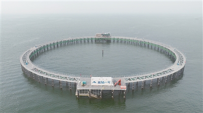 ■黄海所研发的“蓝钻一号”大型养殖围栏。