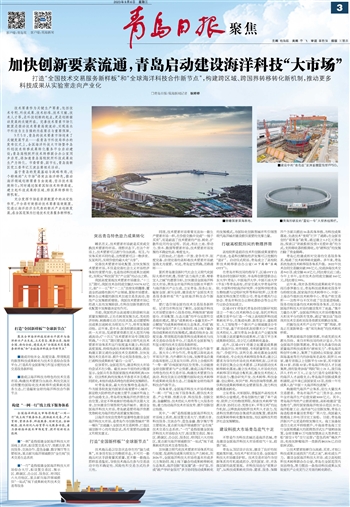 要打造辐射全球的海洋科技合作新节点。放大中心平台作用,青岛要以深化高水平双向开放、内外循环为主线,发挥青岛沿黄沿海双枢纽,以及东向日韩、西向上合组织和“一带一路”沿线国家的区位优势,主动链接全球创新要素与产业资源,建成以海洋科技为特色的技术交易市场,构建技术要素自由流动、科技交流互动频繁的国际化技术转移和成果转化服务生态,打造辐射全球的海洋科技合作新节点。