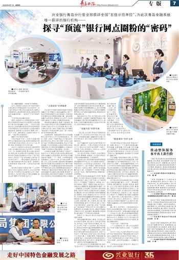 银行网点是银行形象的“窗口”,从某种意义上而言,也是核心竞争力、企业文化的重要元素,作为青岛乃至全国银行业的“顶流”银行网点,兴业银行青岛分行营业部圈粉、斩获业界“奥斯卡”的“密码”是什么?