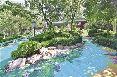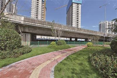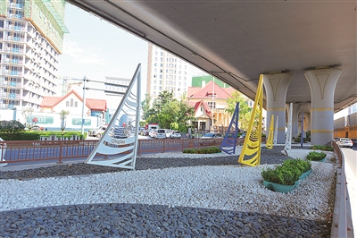 诸如此类被“唤醒”的桥下空间市北如今已有33处:胶宁高架桥下大连支路路段建成了彩绘地砖风格的口袋公园,新冠高架桥下新疆路路段打造了黑白砾石与各类苗木点缀的“海洋风”观景带;胶宁高架桥下延安路路段靠近青岛啤酒街的桥下不仅种植了绿植景观带,还有融入啤酒元素的卡通造型,成为又一处拍照打卡地……