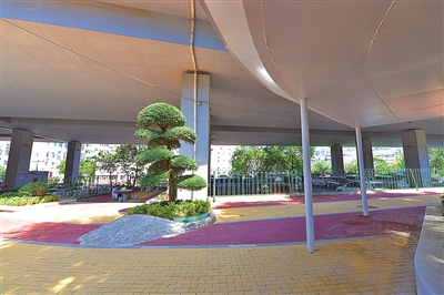 ■瑞昌路立交桥滨海欢乐城段桥下空间修建了“滨海活力训练场”。