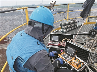 ▲技术人员深入固体废物焚烧厂开展有组织废气排放监测工作。