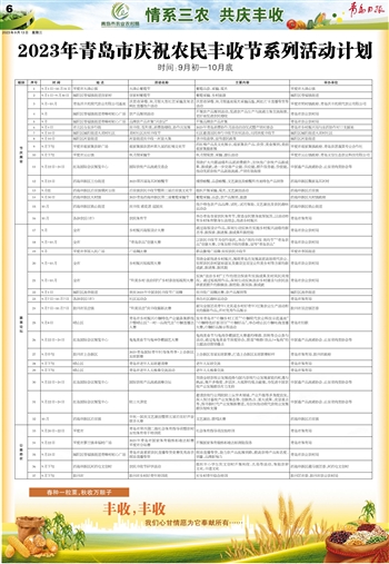 4 9月 城阳区惜福镇街道青峰村初心广场 农产品展销活动 开展农产品展销活动,促进农产品生产与流通主体交流衔接,更好地促进农民增收 青岛市农业农村局