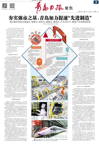 日前,市委市政府印发的《青岛市先进制造业强市行动计划(2023—2025年)》(以下简称“行动计划”)明确了青岛打造先进制造业强市的目标以及路径:通过提升制造业高端化、智能化、绿色化、集群化、服务化、生态化水平,到2025年制造业增加值占全市生产总值比重力争达到29%左右,支撑工业增加值占全市生产总值比重达到30%左右,规模以上工业企业研发机构实现全覆盖,工业互联网平台普及率达到50%左右。