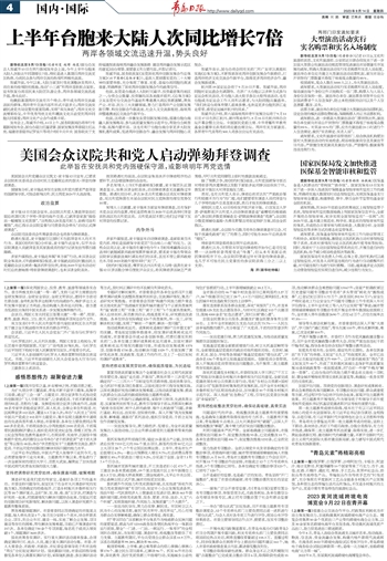 陈斌华说,今年以来,大陆方面及时优化调整涉及两岸人员往来的疫情防控措施,推动“小三通”和两岸直航航点复航,宣布恢复台湾居民来大陆团队游业务,两岸各领域交流迅速升温,势头良好。