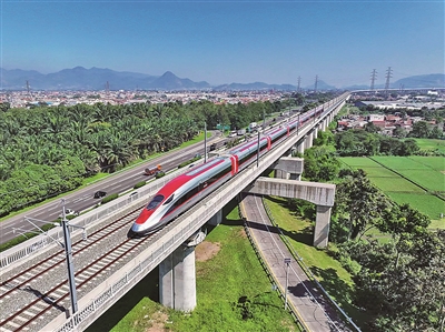 ■中车四方造动车组在雅万高铁线路上飞驰。