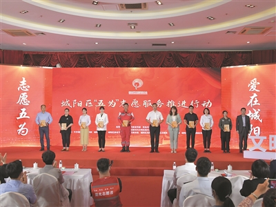 ▲城阳区首批“五为”志愿服务驿站授牌仪式。