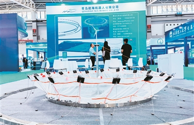 ■青岛赶海机器人有限公司展出海基通天大围网。 韩 星 摄