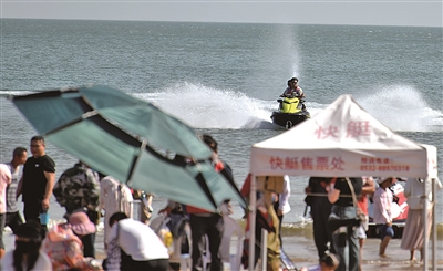 ■游客在石老人海水浴场体验水上项目。王雷 摄