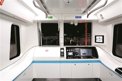 ■无人驾驶的地铁列车内景。