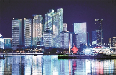 ③10月11日,第四届跨国公司领导人青岛峰会开幕,浮山湾灯光秀点亮峰会标识。 本版摄影 赵健鹏