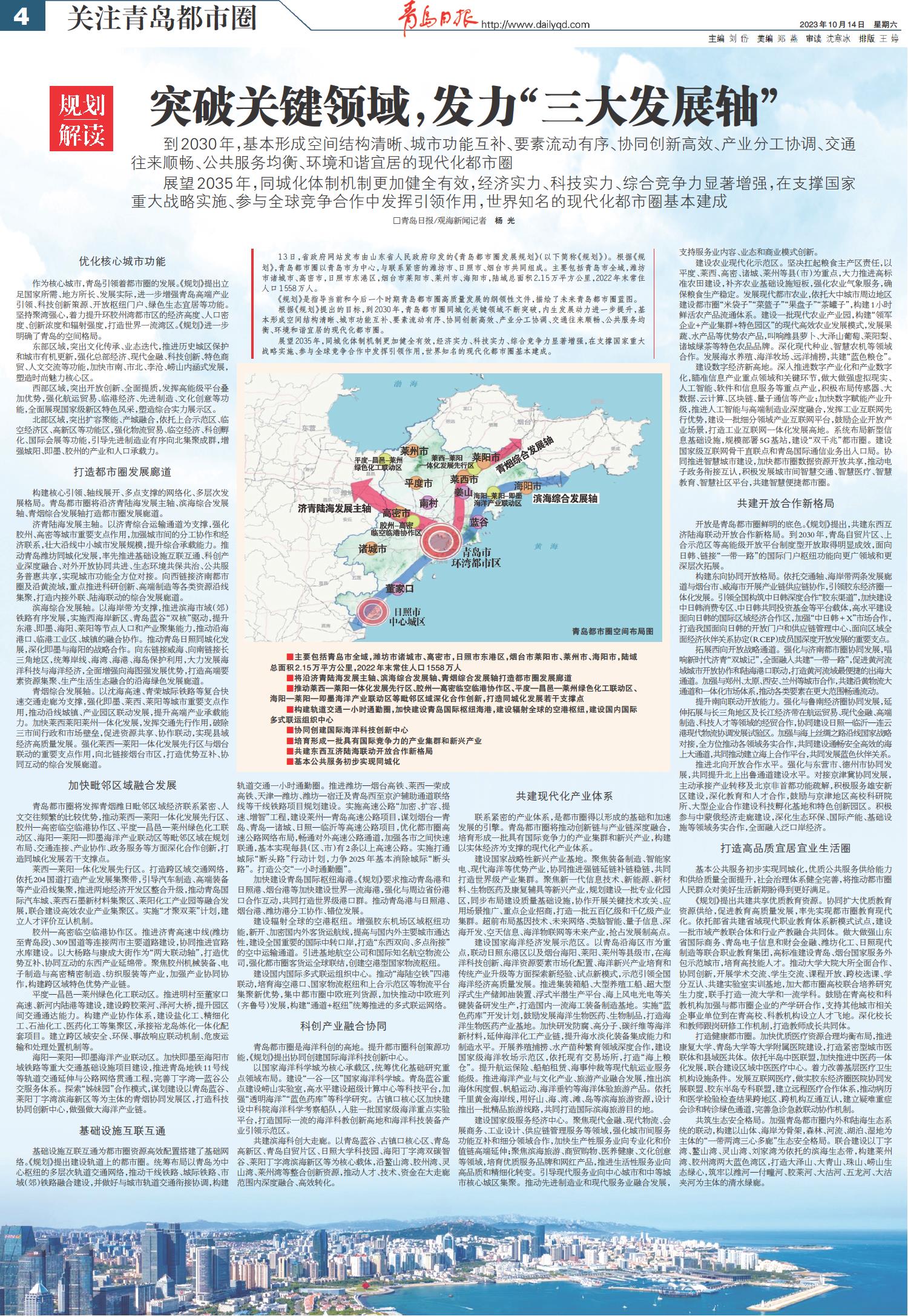 《规划》是指导当前和今后一个时期青岛都市圈高质量发展的纲领性文件,描绘了未来青岛都市圈蓝图。