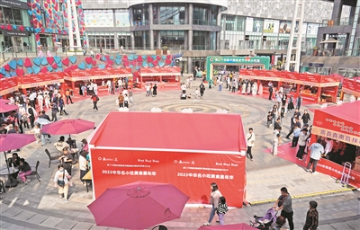 ■首届“地标小吃”百姓美食嘉年华现场,市民游客纷纷在摊位前驻足。