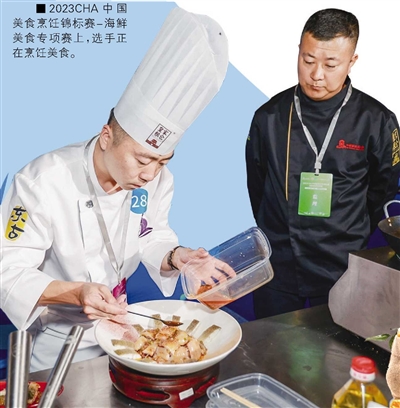 第九届全国饭店业职业技能竞赛中式烹调、餐厅服务全国总决赛共有来自全国餐饮住宿行业72名选手参赛,获胜者有机会赢得“全国技术能手”的最高荣誉。2023CHA中国美食烹饪锦标赛-海鲜美食专项赛和2023CHA中国美食烹饪锦标赛·中粮皇家粮仓杯-大米美食专项赛,共有77名选手参赛,选手分别以海鲜和大米为主题,展开烹饪技艺的比拼。