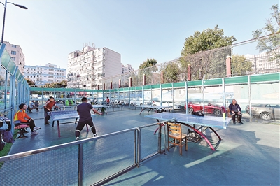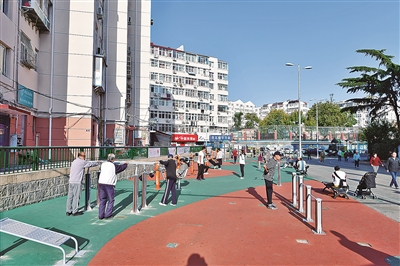 ■市北区将小区广场打造成“室外健身房”。图为同德花园上新的健身器材。