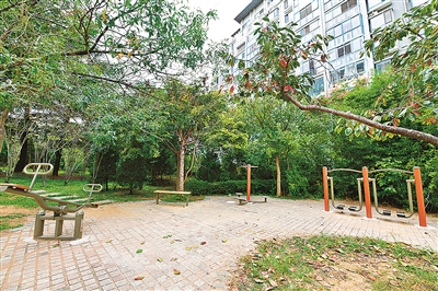 ■今年9月,市北区完成区办实事“1000件健身器材更新新建任务”。图为紫御观邸内健身角。
