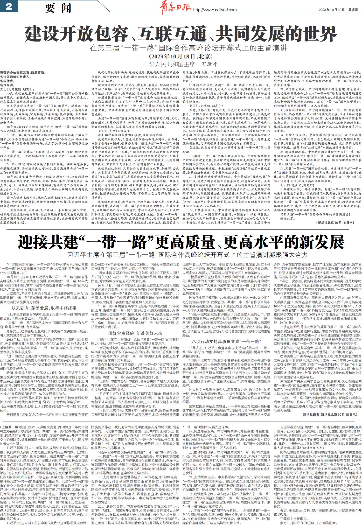 迎接共建“一带一路”更高质量、更高水平的新发展