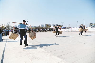 ■乡村运动嘉年华挑粮比赛现场。 王 雷 摄