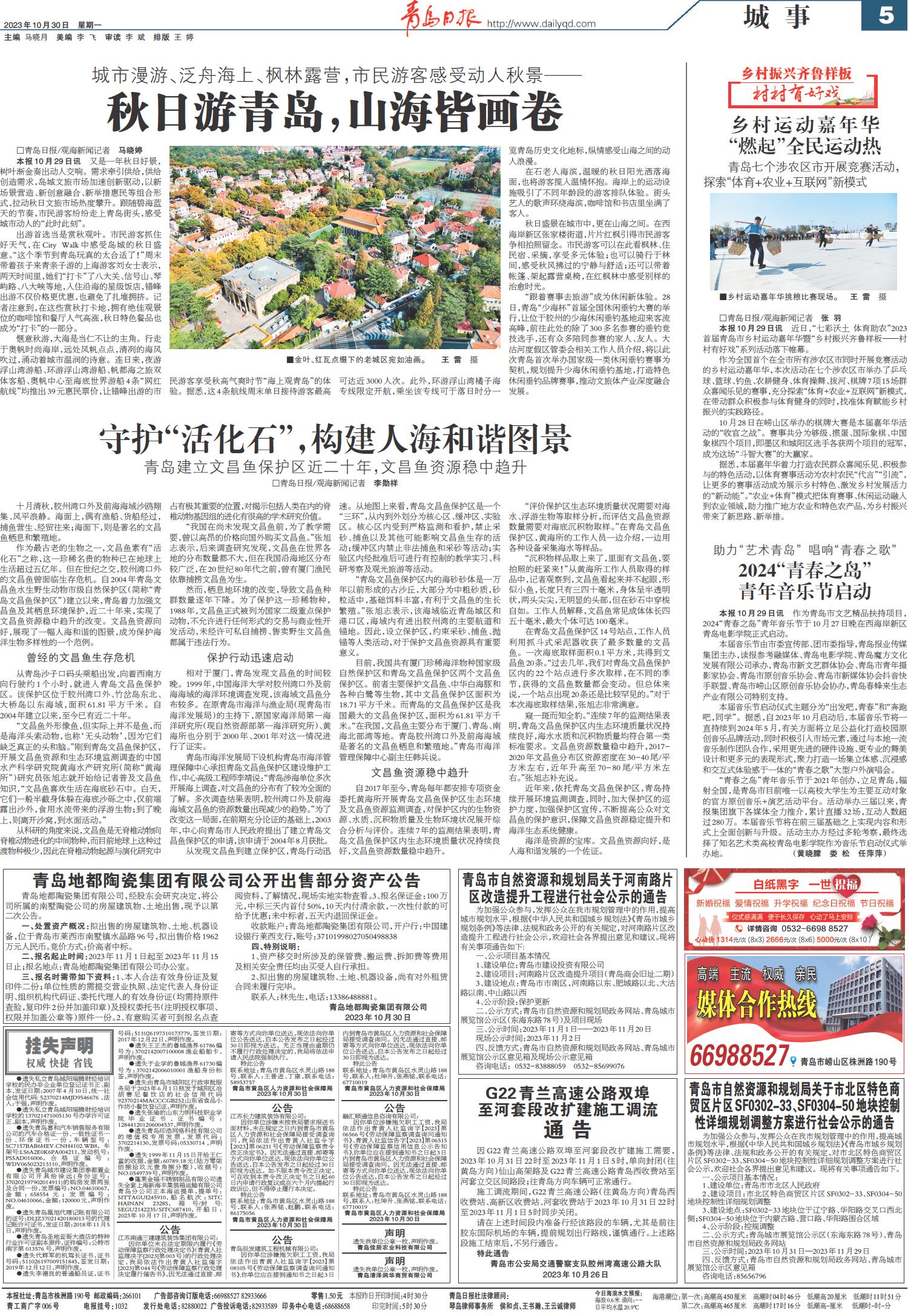 十月清秋,胶州湾口外及前海海域沙鸥翔集、风平浪静。海面上,偶有渔船、货船经过,捕鱼营生、经贸往来;海面下,则是著名的文昌鱼栖息和繁殖地。