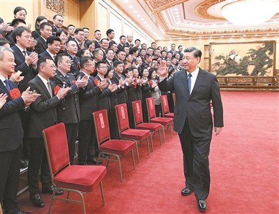上午10时30分,习近平等来到人民大会堂东大厅,全场响起热烈掌声。习近平等向代表们挥手致意,同大家亲切交流并合影留念。
