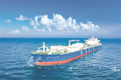 ▲“国信1号”养殖工船在海上游弋式养殖大黄鱼。