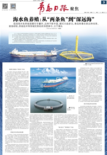 特别值得一提的是,2020年,青岛市获批建设全国第一个国家深远海绿色养殖试验区。在该试验区内,依托“深蓝1号”网箱,青岛养殖的国产深远海三文鱼如今已经走上市民餐桌;2022年,全球首艘10万吨级养殖工船“国信1号”在青岛建成交付,青岛工船养殖的大黄鱼如今也已走进千家万户。这些“青岛实践”都提前“契合”了2023年中央一号文件提出的“发展深水网箱、养殖工船等深远海养殖”规划方向。2023年6月,我国首个关于深远海养殖发展的指导性文件印发,再次布局深远海养殖。当前,青岛正围绕国家战略深化布局,“深蓝2号”网箱预计今年投用,两艘15万吨级大型养殖工船已开始建造。在深远海养殖方面,青岛走在国内前列,正继续发挥引领示范作用。
