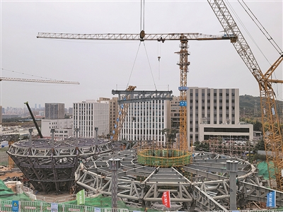 青岛虚拟现实创享中心项目进行钢结构主体施工。 梁 超 摄
