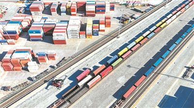 ■山东港口青岛港海铁联运班列。