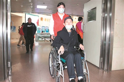 “多亏了这个穿着红马甲的姑娘,否则我不知道还要在大厅里转悠多久。”11月10日上午9时,记者在青大附院本部门诊大厅看到,59岁的丁先生坐在轮椅上,被陪诊员推着前往医保窗口咨询。丁先生告诉记者,他罹患帕金森病已经七八年了,平时走路腿脚不太利索。为了搞清楚自己医保报销的情况,他一大早就乘坐公交车从人民一路赶来,但因为对医院的环境不熟悉,在医院转了很长时间。路过门诊导医服务岗时,他被陪诊员主动发现。陪诊员帮他借用了免费的轮椅,推着他前往医保窗口,咨询结束后将他送到医院门口的公交车站。