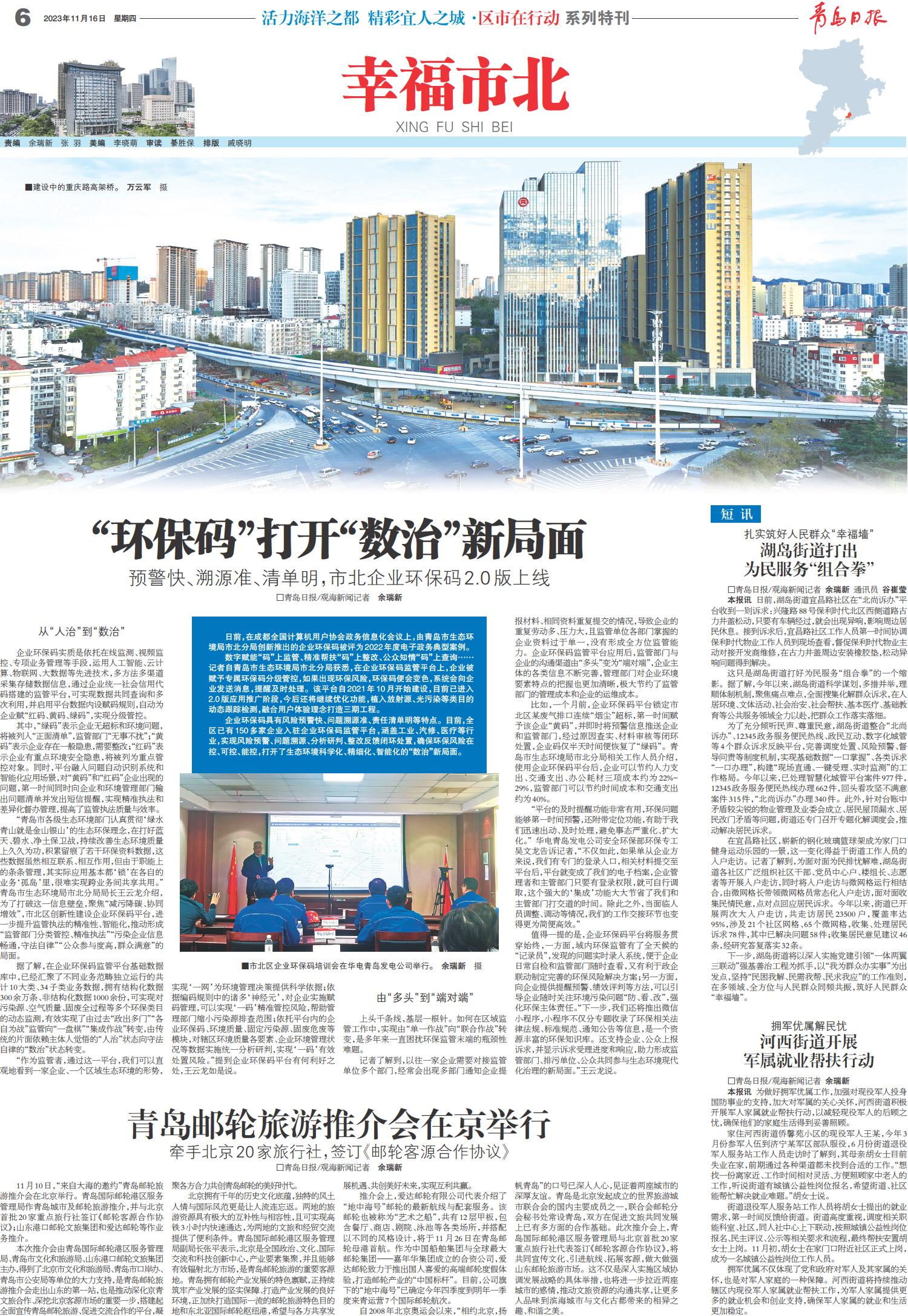 01 首版 02 要闻 03 青岛日报聚焦 04 国内 05 专版 06 幸福市北 07 幸福市北 08 广告