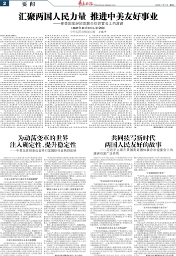 “习近平主席为美中关系面向未来制定出清晰的路线图,美中相互尊重、和平共处,多沟通、多对话、多商量,整个世界都将变得更好。”美国艾奥瓦州大豆协会市场部高级主任格兰特·金伯利对习近平主席有关“五个共同”的重要论述颇有感触。