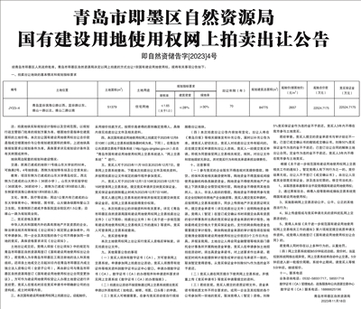青岛市即墨区自然资源局国有建设用地使用权网上拍卖出让公告