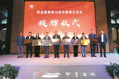 ▲青岛市职业教育参与老年教育示范点授牌仪式。