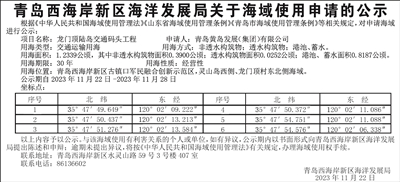 青岛西海岸新区海洋发展局关于海域使用申请的公示