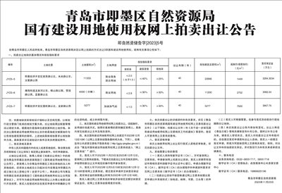 青岛市即墨区自然资源局国有建设用地使用权网上拍卖出让公告