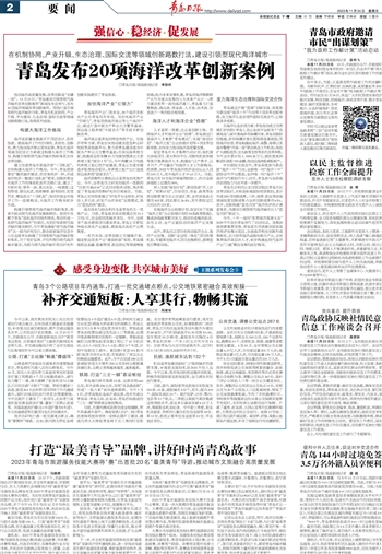 本报11月23日讯 23日下午,市政府新闻办召开新闻发布会,市文化和旅游局、市委网信办、市人力资源社会保障局介绍“最美青导”导游服务品牌发布及2023年青岛市旅游服务技能大赛举办情况。为加快实现青岛市旅游品质提升总目标,我市将打造“最美青导”导游服务品牌,并于今年11月中旬至12月中旬举办2023年青岛市旅游服务技能大赛,决出20位选手纳入首批“最美青导”导游服务队伍。