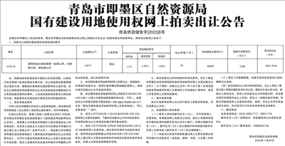 青岛市即墨区自然资源局国有建设用地使用权网上拍卖出让公告