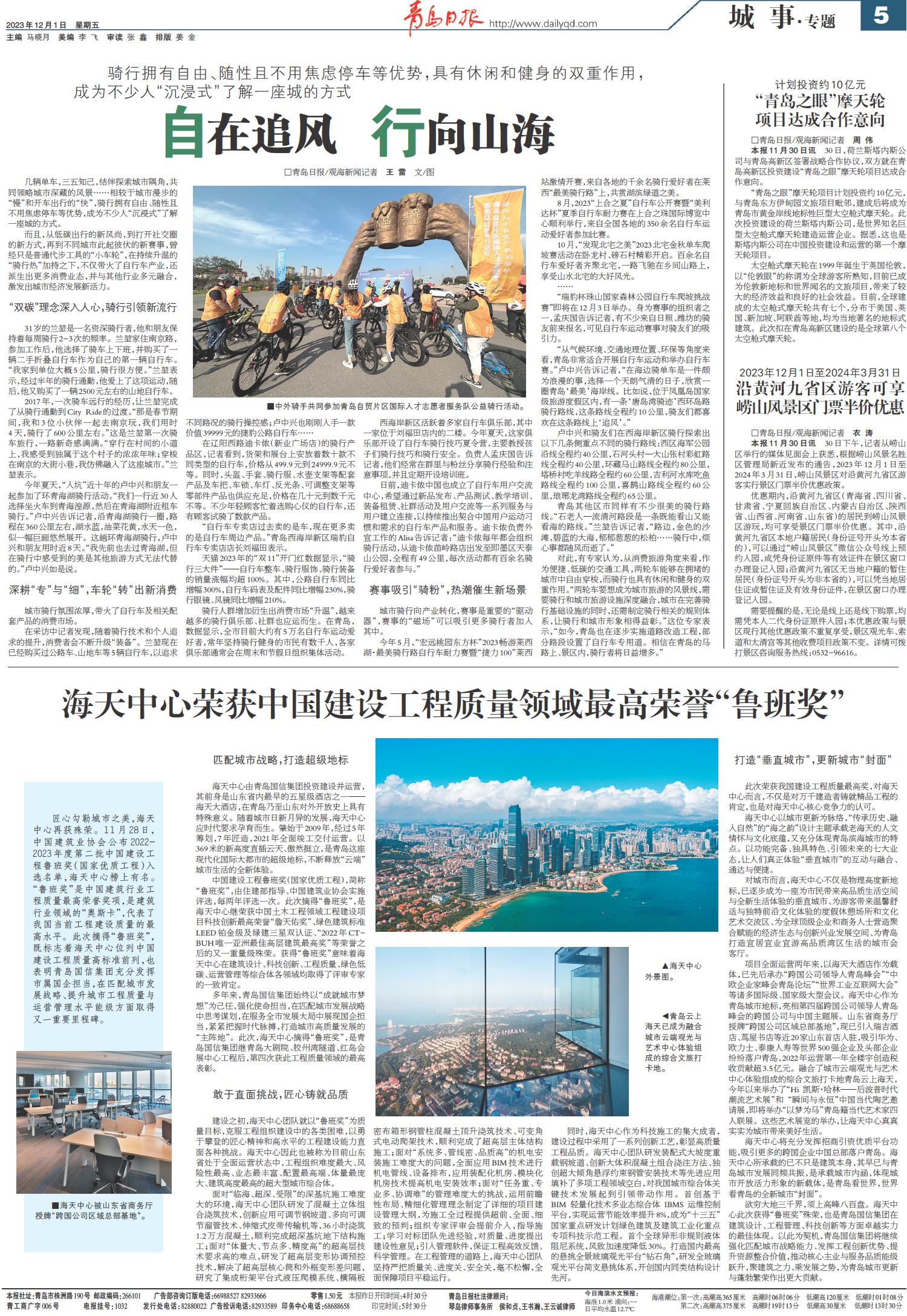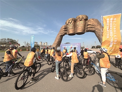 ■中外骑手共同参加青岛自贸片区国际人才志愿者服务队公益骑行活动。