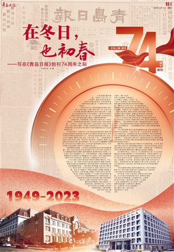 今天,我们梳理《青岛日报》筚路蓝缕的历程,就是在重温青岛这座城市的历史体温。74载不仅代表一个时间的刻度,更是铸造一种百折不挠的信念。这座梦想之城,经历过百废待兴,经历过披荆斩棘,经历过突破重围,经历过柳暗花明,经历过灿烂辉煌,正在更高起点上勇毅前行……检索《青岛日报》长河一般源远流长的历史,就是抚摸青岛这座城市历尽沧桑的容颜,就是探测青岛这座城市的潜质,就是丈量青岛这座城市的雄心。