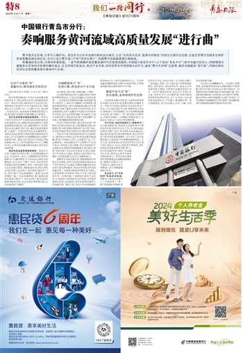 大河流日夜,慷慨歌未央。九曲黄河,奔腾向前,高质量服务国家重大战略的脚步不曾停歇,青岛中行将立足岛城,助力青岛“强龙头”,为服务深化黄河流域区域合作发挥金融力量,为实现陆海资源对接、东西优势互补贡献中行智慧,融合好青岛与黄河流域省区互动的“多声部”,讲述好新时代金融赋能的“黄河故事”,高质量服务黄河流域演奏出新时代最动听的进行曲。