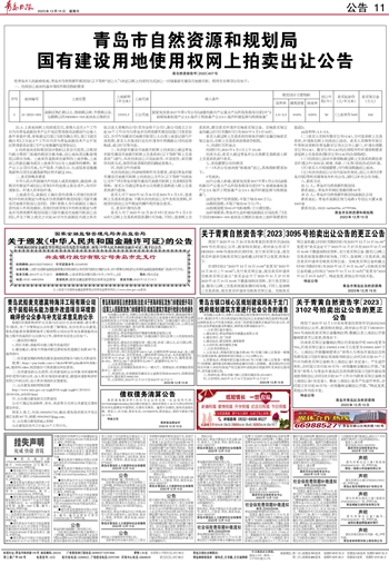 (五)本次拍卖出让公告内容如有变化,出让人将在《青岛日报》等相关媒体发布补充公告,届时以补充公告为准。