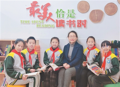 ■西海岸新区隐珠小学校长张广凤陪伴学生读书。