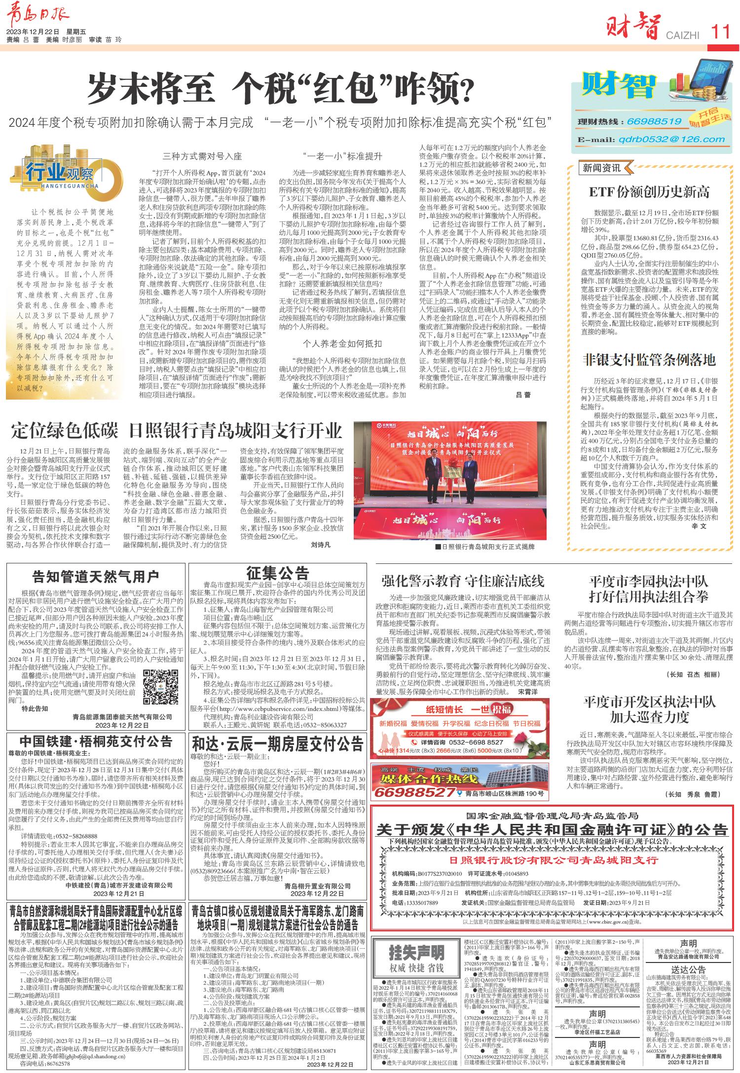 01 首版 02 要闻 03 青报聚焦 04 国内 05 要闻 06 媒立方 07 专版 08 金融街 09 今日即墨 10 专版 11 财智 12 法治