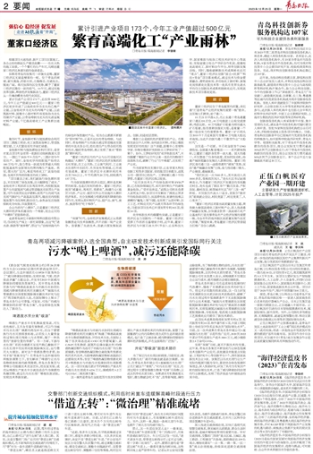 “董家口经济区内的产业与公用设施间还构建起‘大循环’。”董家口经济区经济发展部部长杜军说,在工业用热、工业废气利用、工业废水处理和中水回用、光伏发电等领域,已形成有效成果。董家口经济区中水循环利用率达到75%以上,年节约蒸汽20万吨,回收蒸汽137万吨。