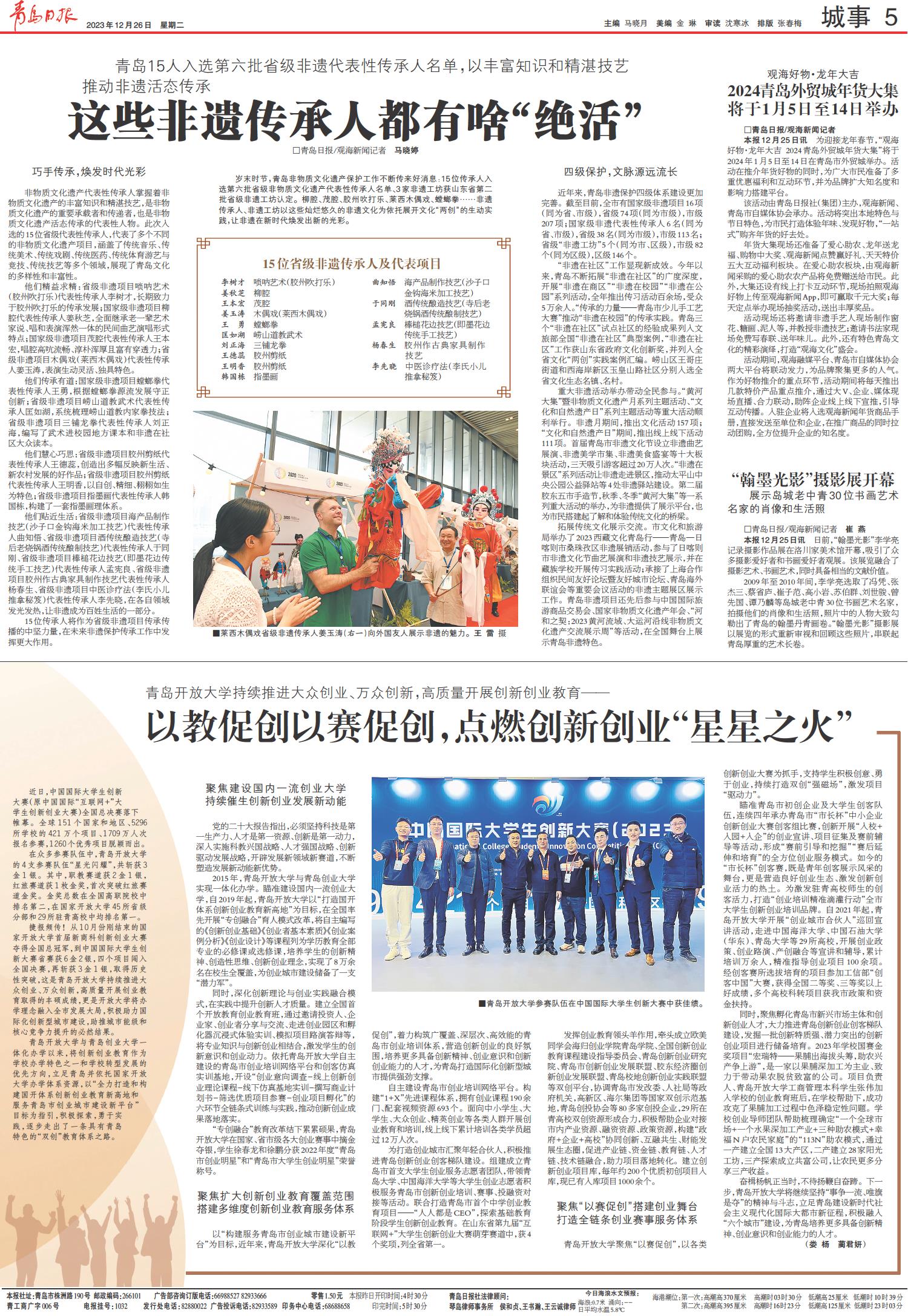 “专创融合”教育改革结下累累硕果,青岛开放大学在国家、省市级各大创业赛事中摘金夺银,学生徐春龙和徐鹏分获2022年度“青岛市创业明星”和“青岛市大学生创业明星”荣誉称号。