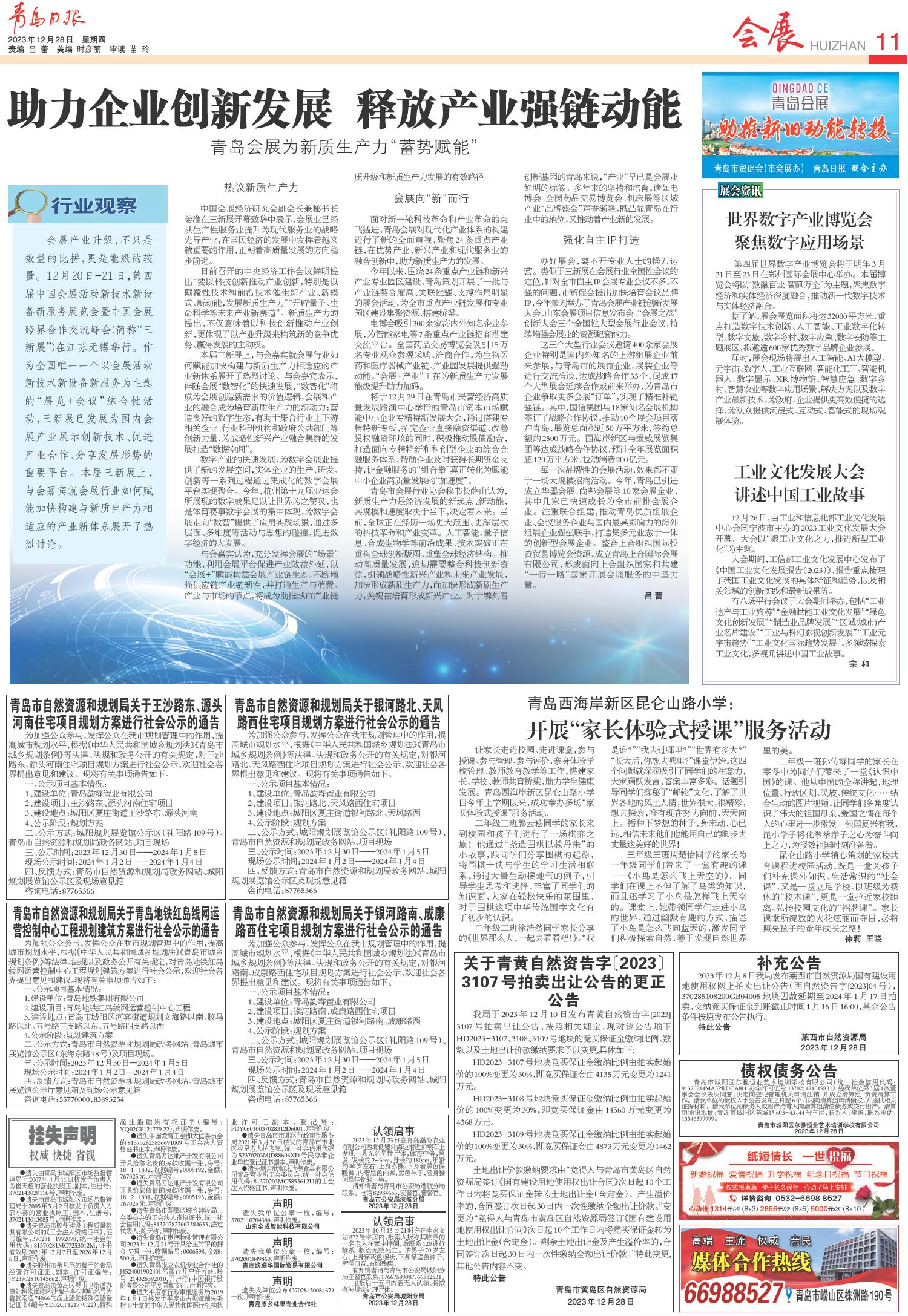 01 首版 02 要闻 03 青报聚焦 04 国内 05 关注 06 金融街 07 幸福市北 08 幸福市北 09 专版 10 青报公益 11 会展 12 楼市