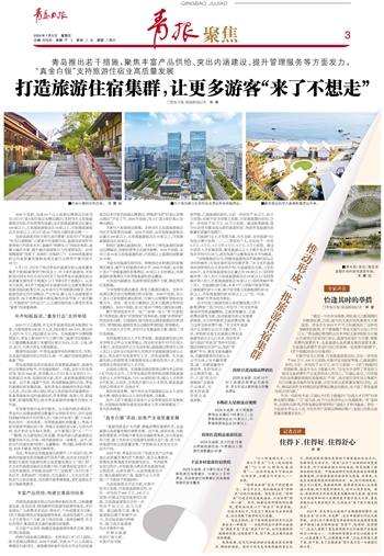 全方位助力旅游住宿业高质量发展,《若干政策》释放了强力的信心和信号。“市文化和旅游局将围绕金融赋能、文旅深度融合、文旅消费场景等方面,推动旅游住宿业发展提质增效,大力培育新型文旅消费场景,助力过夜住宿消费升级。”市文化和旅游局产业发展处处长刘文静介绍,下一步,将持续完善文化旅游业特别是旅游住宿业企业白名单,推动更多银行推出“民宿贷”等针对民宿、酒店的特色信贷产品,依托“青融通”平台,建设文旅金融板块,有融资需求的住宿业企业可在线上发布融资需求,进一步提高融资对接效率,支持住宿业企业提质升级。此外,打造“吃住行游购娱”全链条产品体系,有效支持旅游住宿业高速发展。
