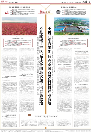 经过精心培育,南墅镇石墨新材料产业渐成“生态雨林”。“我们将一如既往,脚踏实地走绿色可持续发展道路,打造产业特色鲜明的石墨新材料产业集群、国家级‘绿色碳谷’,为擦亮‘世界石墨看中国,中国石墨看南墅’的亮丽名片而努力。”谈到未来,孙嘉善信心十足。