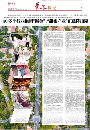 去年以来,随着婚庆市场回暖,到青岛来举行一场旅行婚礼,已经成为越来越多情侣的选择。市政府办公厅去年12月7日下发的《关于印发青岛市扩大内需三年行动方案(2023-2025年)的通知》中明确提出,要开展“旅游+婚拍”行动,培育“海誓山盟”婚庆旅游品牌。在“全城热恋”的氛围中,伴随着“海誓山盟”IP效应的不断释放,青岛婚恋行业在迎来更多流量与经济收益的同时,也在加速推动青岛“破阵出圈”,打造婚恋旅游目的地。