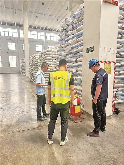 ■人保财险青岛分公司工作人员进企业排查生产隐患。